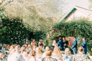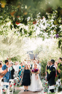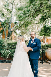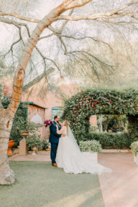 The courtyard is the signature ceremony location. Surrounded by historic architecture and gardens. Natural canopy overhead. Warm Arizona light filtering through trees. It’s magical.