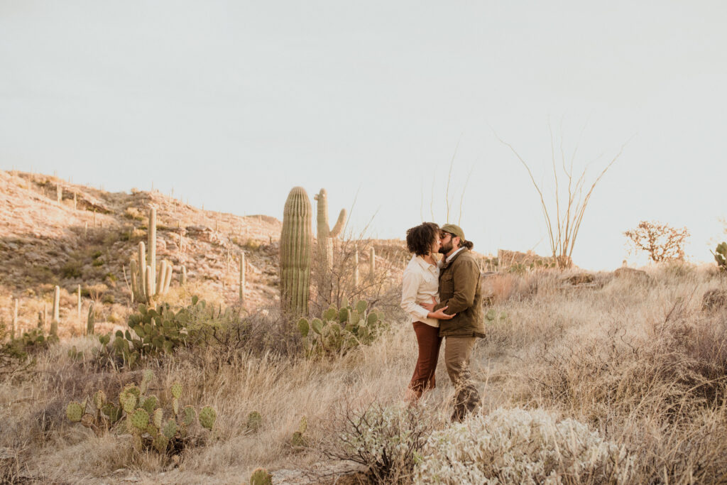 If you’re considering a desert engagement session at Saguaro National Park, here are a few tips. Wear comfortable shoes. The terrain can be rocky. Bring water. Arizona heat is no joke, even in cooler months.